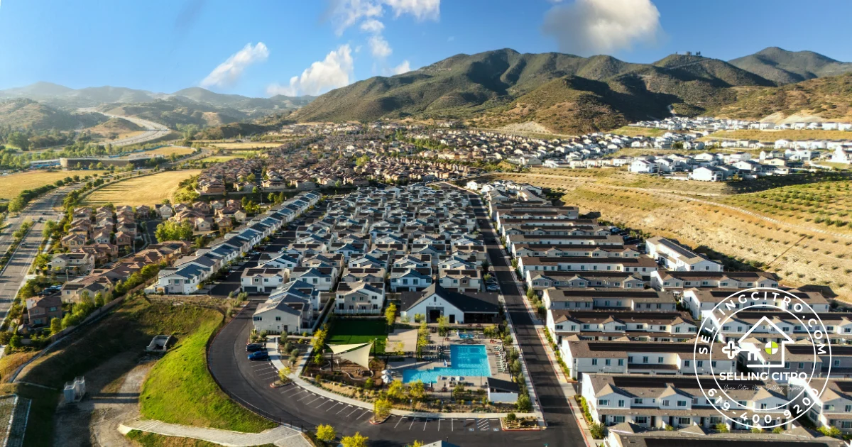 CITRO is a small intimate community of about 850 single family homes and townhomes, nestled in the beautiful hills of Monserate Mountain Preserve and surrounded by natural beauty. Forever views of the mountains with large massive boulders, the green hills of groves and wineries, expansive sunset views and intense sunrises, combined with year round breezes, long walking trails and vast outdoor space for running, biking, playing…